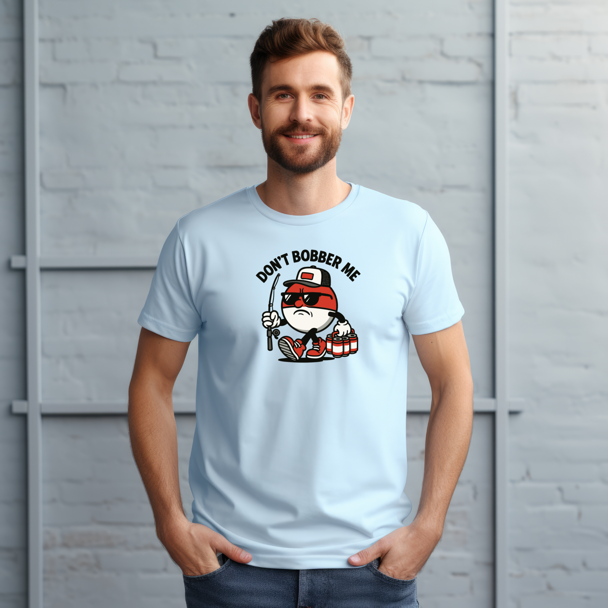 Well look who just rolled upāour tough little bobber bro, struttinā straight outta the tackle box with a fishing pole in one hand and a six-pack of cold ones in the other. š Heās got that ādonāt test meā face, those red kicks, and a whole lotta lake day attitude