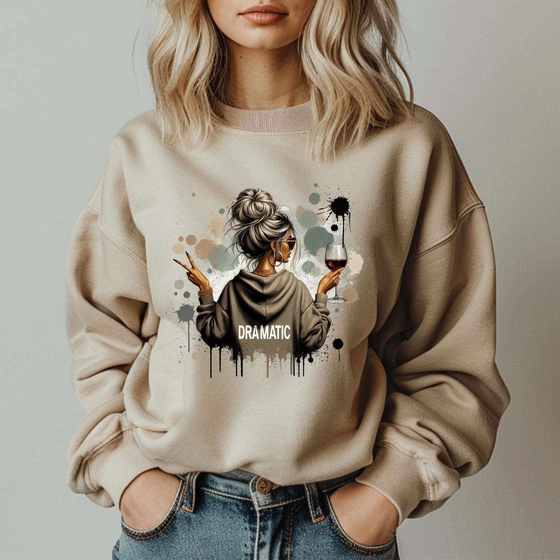 Turn heads, pour the wine, and let your inner diva shine! This "DRAMATIC" sweatshirt is for the ladies who live out loud and are a whole vibe! This piece brings all the Scoobie Shack energy- playful, bold & and fabulous!