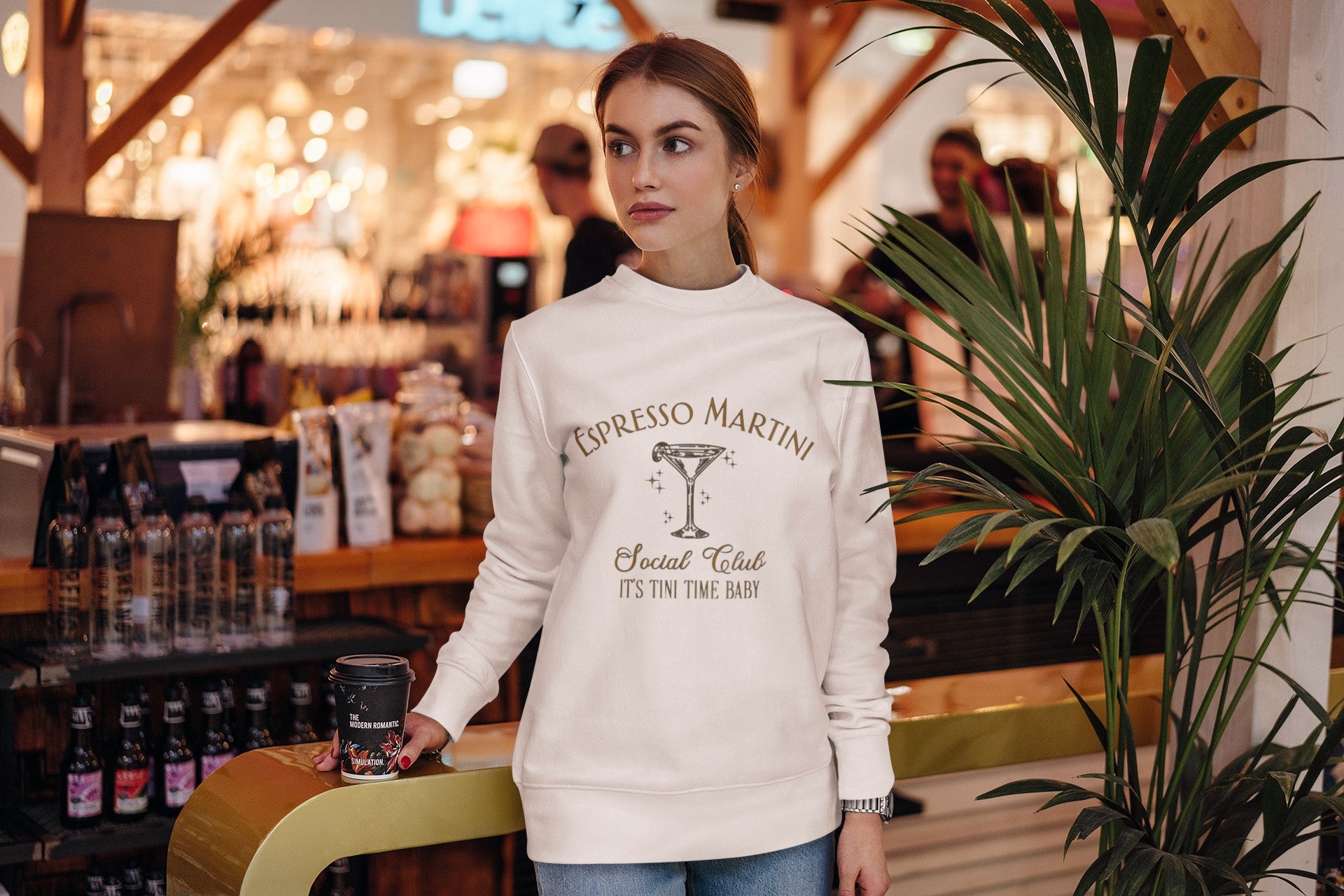 Stay cozy and chic with the Espresso Martini Sweatshirt, made from 80% sustainably grown USA cotton and 20% polyester. Its soft fleece fabric feels like a warm hug, while the stretchy ribbed cuffs and bottom band keep your look fresh and comfortable. The double-needle topstitching makes it durable enough for your everyday adventures. Perfect for those who want to mix comfort with a splash of style! Cheers!